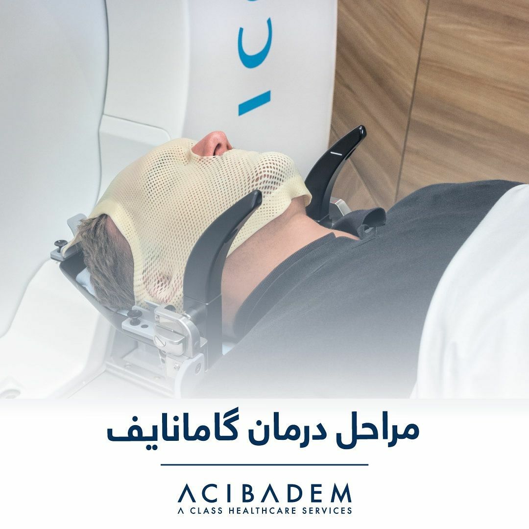 - برای انجام گامانایف در مدل های قدیمی تر این دستگاه از Leksell stereotactic استفاده میشود که وسیله ای برای ثابت نگه داشتن سر است و بر روی سر بیمار قرار می گیرد تا درمان با بالاترین دقت انجام شود. گامانایف آیکن که در بیمارستان آجی بادم مورد استفاده قرار می گیرد جدیدترین ورژن بوده و از مدل های قبلی متفاوت است، زیرا این امکان را فراهم می کند که فرایند درمان به جای استفاده از فریم stereotactic با ماسک انجام شود. پس از اینکه ماسک ثابت شد، از یک سیستم تصویربرداری که مخصوص پاتولوژی بیمار است استفاده می شود. در حال حاضر همه بیماران با ام آر آی تحت نظارت قرار می گیرند.